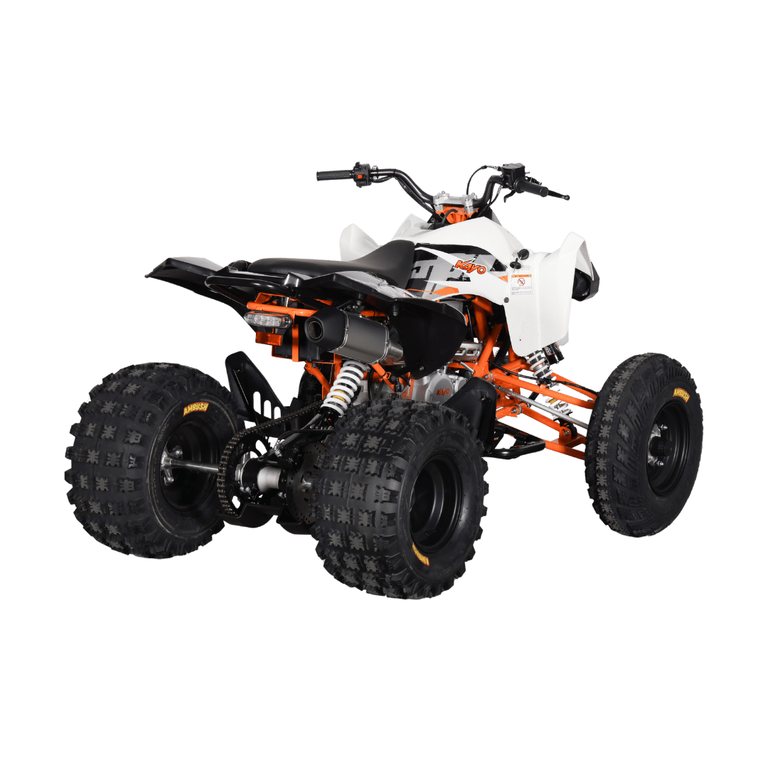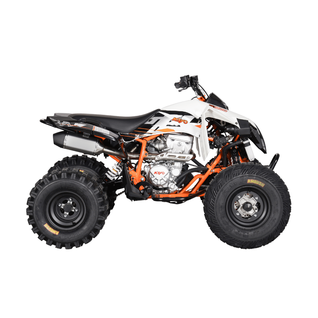 De KAYO A300 is een topklasse sport-ATV voor serieuze offroadliefhebbers. Met een EFI-geoptimaliseerde 292cc vloeistofgekoelde motor, handgeschakelde 5-versnellingsbak, en volledig instelbare vering, biedt deze machine maximale prestaties op elk terrein. Perfect voor ervaren rijders vanaf circa 16 jaar, dankzij z’n stevige frame, responsieve hydraulische remmen, en gripvaste CST Ambush offroadbanden. De A300 is klaar voor alles: van intensieve races tot extreme avonturen.